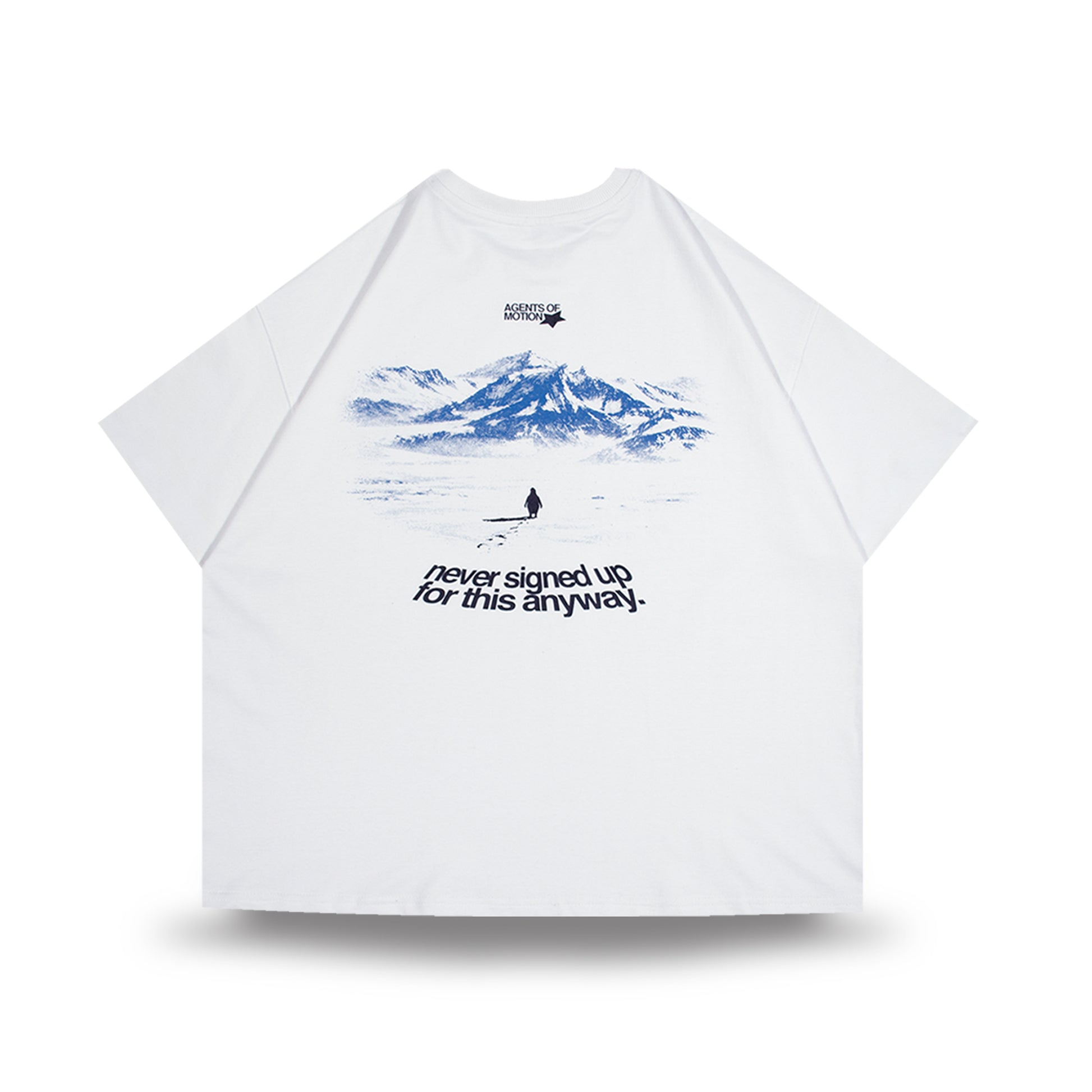 Colourway: Pure White w/ Black Text + Cool Blue Halftone Graphic