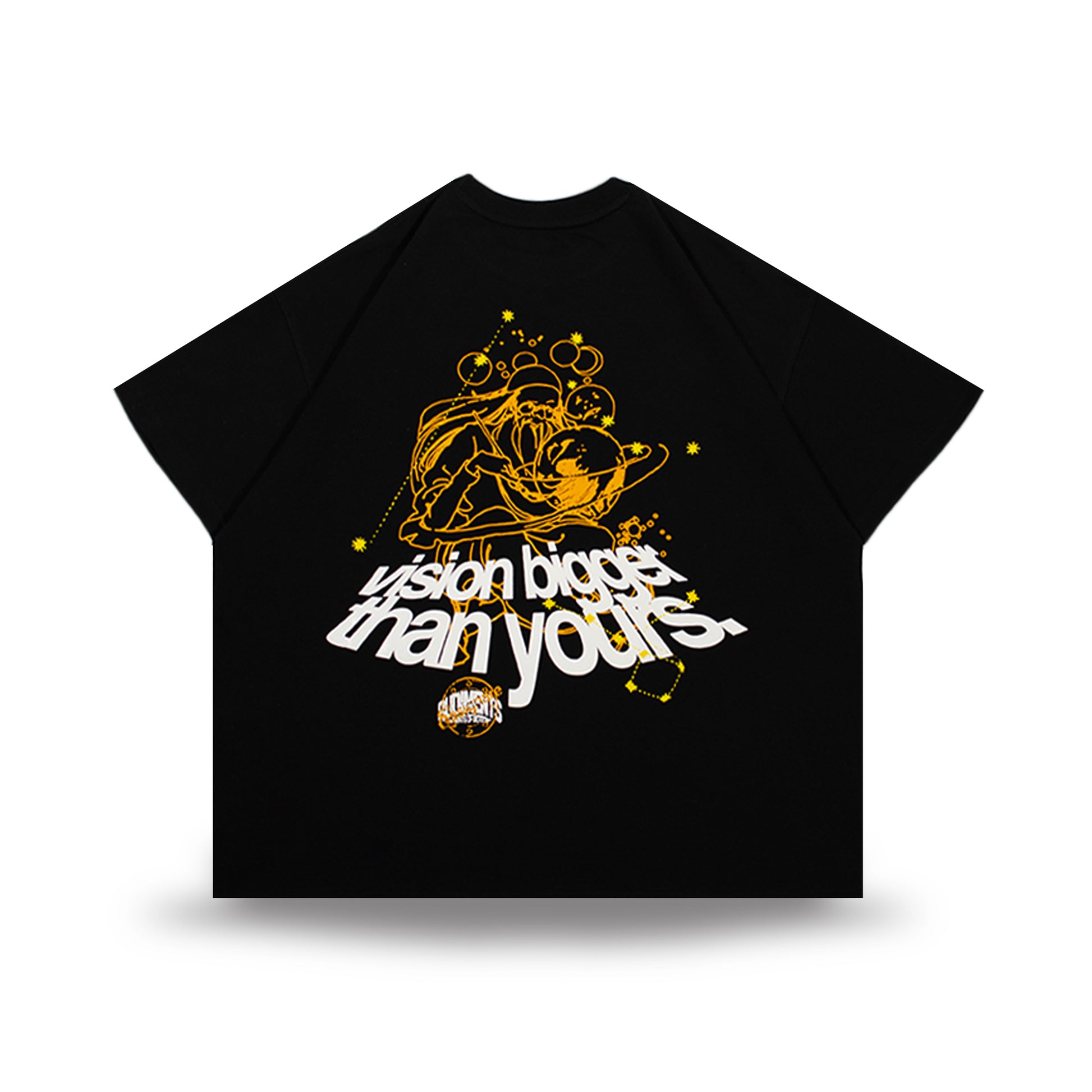 Mid-weight t-shirt features an oversized fit with drop shoulders.